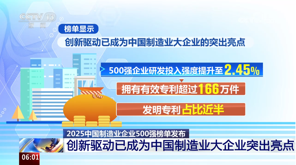 2025中國(guó)制造業(yè)企業(yè)500強(qiáng)榜單參照國(guó)際通行的做法,以2024年企業(yè)營(yíng)業(yè)收入為入圍標(biāo)準(zhǔn),入圍門檻持續(xù)提升,從“十三五”末的110.91億元提高至173.65億元,標(biāo)志著我國(guó)制造業(yè)大企業(yè)整體實(shí)力穩(wěn)步增強(qiáng)。2025中國(guó)大企業(yè)創(chuàng)新100強(qiáng)則聚焦企業(yè)研發(fā)投入強(qiáng)度、研發(fā)費(fèi)用、發(fā)明專利數(shù)、收入利潤(rùn)率等指標(biāo)的綜合評(píng)價(jià),挖掘和展現(xiàn)中國(guó)大企業(yè)的創(chuàng)新能力與成果,現(xiàn)已成為衡量企業(yè)創(chuàng)新水平的重要指標(biāo)之一,本次為連續(xù)第5年推出。