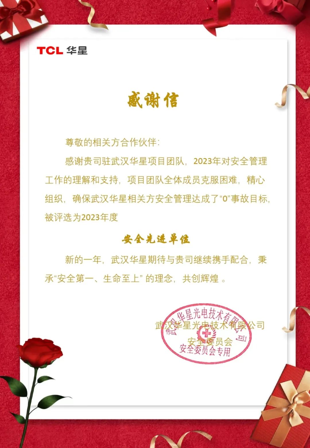 截止2023年底,TCL華星光電已連續(xù)五年授予Tensun騰盛“安全先進單位”,在五年的服務(wù)時間中,騰盛技術(shù)服務(wù)團隊達成了“0”事故目標,得到客戶的高度認可。